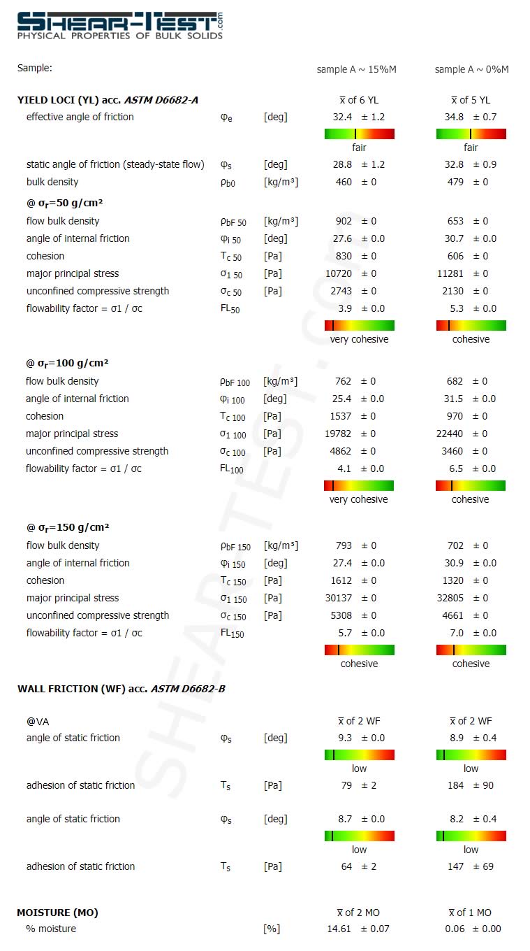 Da die Feuchtigkeit im Produktionsprozess oder Jahreszeitlich oftmals Schwankungen unterlegen ist, sollte der Einfluss auf die Fließfähigkeit bestimmt werden. Dabei sollte der Einfluss der Feuchtigkeit sowohl bei der Messung der inneren Reibung als auch bei der Wandreibung gemessen werden.